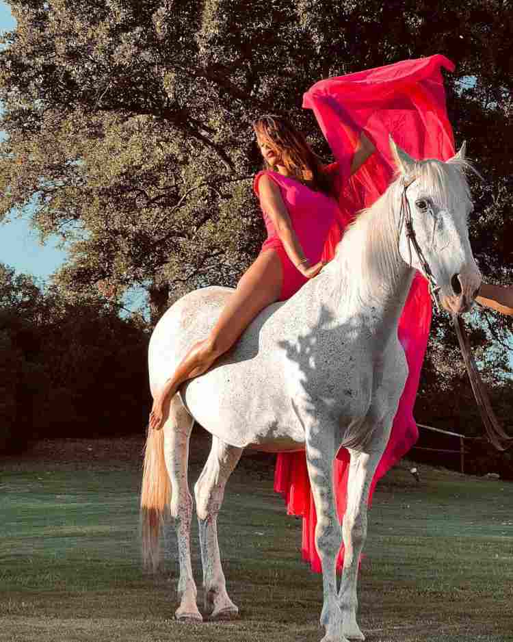 Nell’ultima uscita della Duran c’è stato persino un cavallo, sul quale la bella trentaquattrenne ha posato. Vestita dal noto designer milanese, Gianmarco Capitani, la venezuelana si è definita “valchiria” nella descrizione allo scatto postato su Instagram.